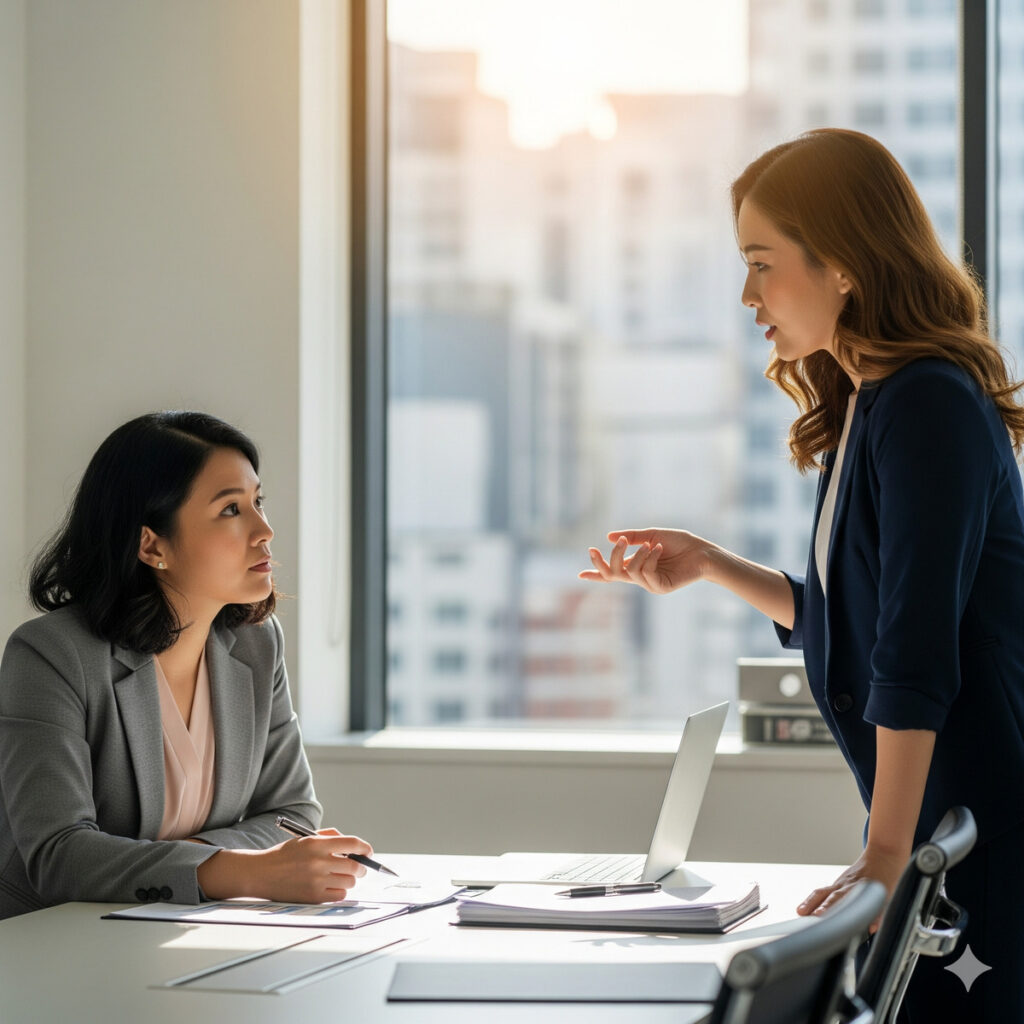 Ngồi xuống với nhân viên và hỏi chuyện gì đang xảy ra, đồng thời lắng nghe với tinh thần cởi mở