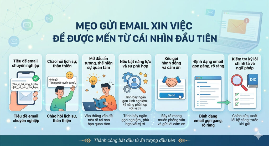 “Gửi một email xin việc tuyệt vời phù hợp với CV và thư xin việc của bạn sẽ giúp bạn có lợi thế hơn so với các ứng viên khác.”