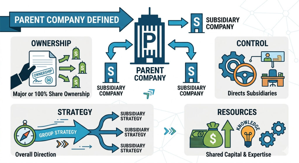 Công ty mẹ là một doanh nghiệp sở hữu quyền kiểm soát đối với một doanh nghiệp khác và có thể kiểm soát các hoạt động của doanh nghiệp đó.
